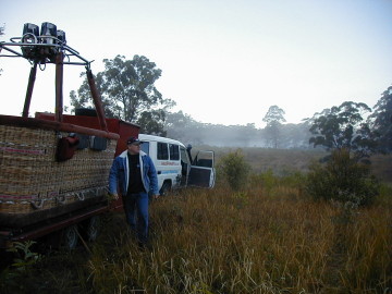 とんでもない山の中が出発点。後ろの荷台に乗っているのが気球のバスケット。