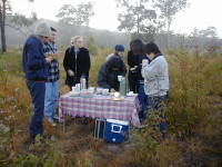 片付けが終わるとテーブルに朝食が用意される。シャンパンで乾杯し、クッキーやチーズ、パンなどを食べる。気球に乗る前は全然おしゃべりをしなかった人達も打ち解けて話が弾んだ。