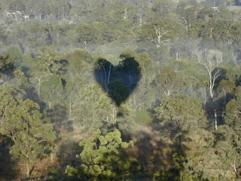 いよいよ出発!木にハート型にうつっているのが乗っている熱気球。当たり前だが、飛んでいる姿は撮れなかった。(^^)