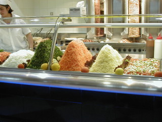とにかくダイナミックな所。右の写真で赤いのはにんじん、白いのはチーズを山盛りもって置いてあるところです。