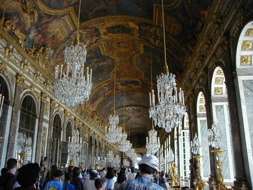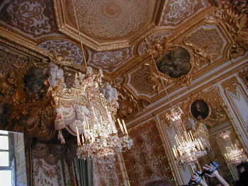 正直言うと、ツアーではなく自分で来たかったのであるが、鏡の間等、ヴェルサイユ宮殿の宮殿たる所はツアーでないと入れないのだ。理由は多分、ルーブルで僕が感じた事に近いだろう。フラッシュ厳禁なのである。ツアーコンダクターがバスの中で説明していたが、美術館にしろ宮殿にしろ、美術品がある所はどこもフラッシュは禁止なのだが、どこまでそれを徹底しているかは場所によって違うとの話である。そう、ここヴェルサイユではツアーコンダクターに見学者がフラッシュをたかないように管理させているのである。にもかかわらず、やっぱりフラッシュを使う人がいて、日本語や英語で「フラッシュはだめですよ!」と何度か注意が飛んでいた。