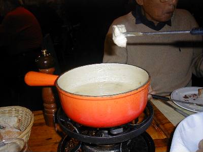 着いたのが昼前だったので、取り合えず昼食にする事にした。日本料理を食べたがる息子を尻目に、ガイドブックに載っているスイス料理の店に行く。そう、チーズフォンデュが目的だ。息子にはスパゲッティ−があったので、それを注文した。