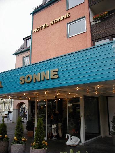 どうにかインフォメーションの駐車場に車を停め、連れ合いの所に行く。インフォメーションではリストをくれるが、電話は自分でしなくてはならないという事で貰ったリストの上から順番に電話をかけていく。しかし、どのホテルも満杯だった。だんだんあせりが出てくる中、再度インフォメーションに行き、もう少し高くてもいいからといって少し高めのホテルリストを貰う。その中にそのインフォメーションの前に見えるホテルの名前があった。そこに電話をすると一発でOKだった。金額にしてツインで30DM、1600円ほど高いだけである。一人頭にすると5000円はしない。今からすぐに行くからと言って、電話を切る。