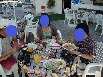 例によって屋外のテーブル。ドイツに来る前は「ドイツの食べ物はソーセージとジャガイモばかりで飽きる」と聞いていたが、何の何の。料理はバラエティーに富み、英語のメニューとはいえ、よく分からない料理が並び、出てくるのが実に楽しみだ。(^^)