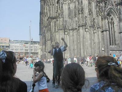 そろそろ次の宿泊地に向かおうと駐車場に向かうと、大聖堂前で大道芸をやっていた。息子が見たいというので、みんなで見学した。ドイツではいたるところで大道芸を見るが、音楽関係が圧倒的に多い。このような大道芸は少数派だ。