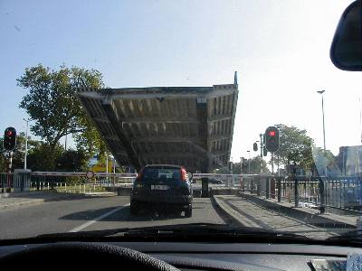 初めて見る跳ね橋にちょっと驚き。しかし、この後、跳ね橋が再び下りるまで15分くらいかかった。(^^;