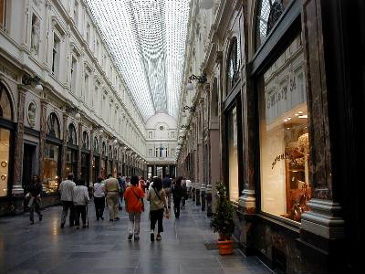 遅めの昼食を済ませて一休みした後、夕方、「世界で一番美しい」と言われるグラン・プラス広場に出かけた。写真はその広場に向かう途中のアーケードである。ここもなかなか美しい所だ。